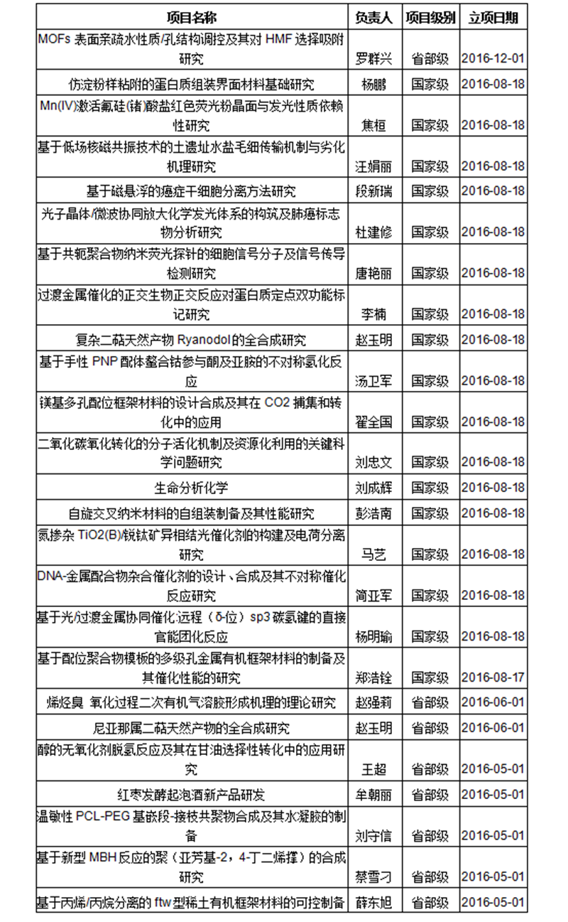 2016年承担项目